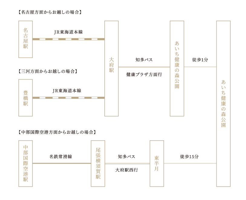 知多バス 大府駅→あいち健康の森公園(10分)※1時間に1~2本運行