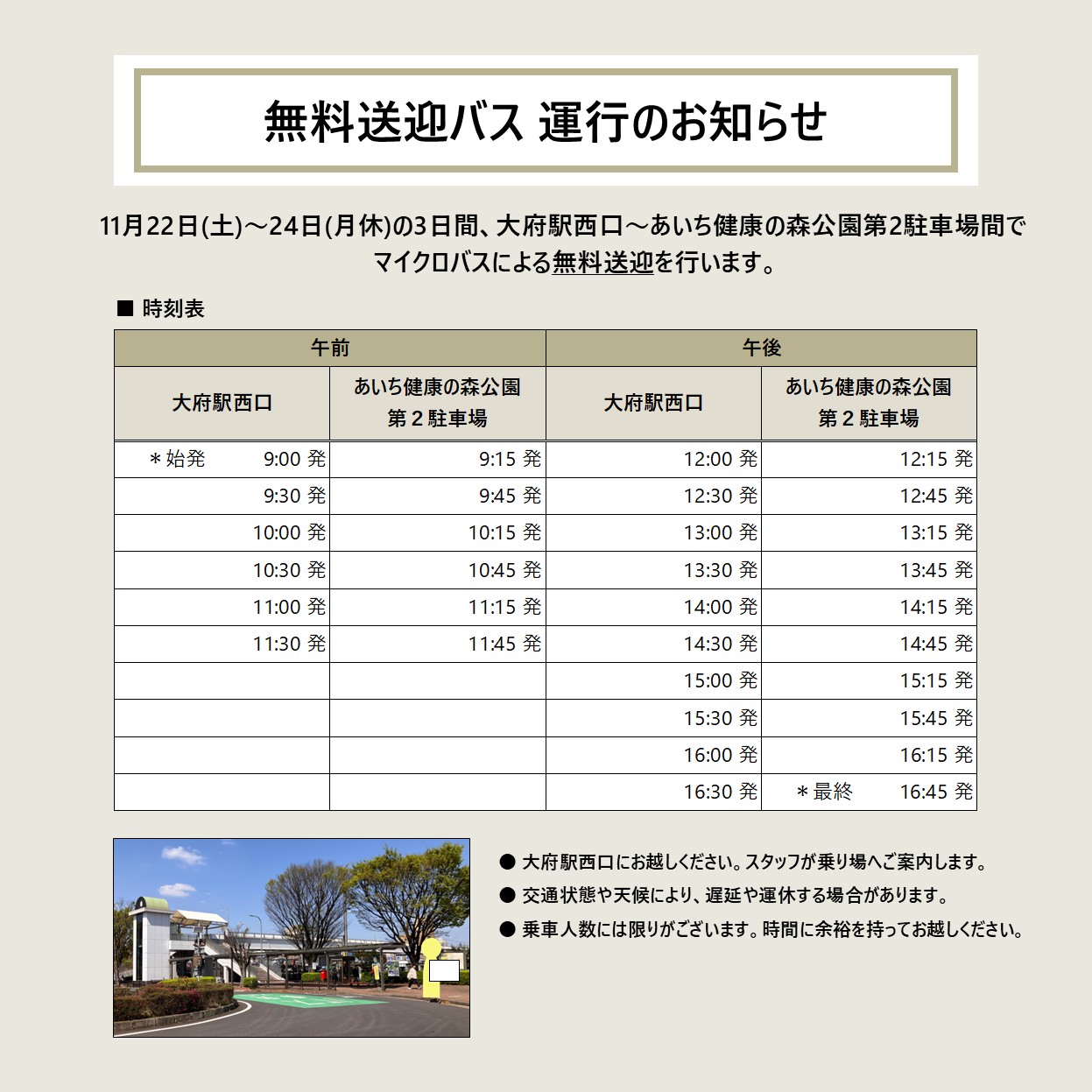 ●知多バス: あいち健康の森公園下車