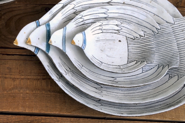 「掻き落とし」の技法を使って鳥や草花などの自然物をモチーフに、普段使いのプレートを製作しています。ろくろや手びねりで一つずつ丁寧に形成した器をお届け。お気に入り探しや贈り物にもおすすめです。