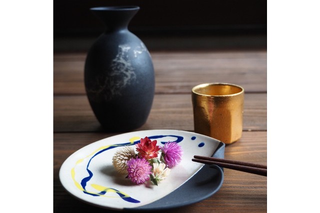 磁器土を使用し銀彩器や螢手の技法などを取り入れた酒器を中心にお届け。暮らしの中にちょっとした“嬉しさ”を添えられるようにと作陶しています。プラチナを使用した銀彩器はプレゼントにもおすすめ。
