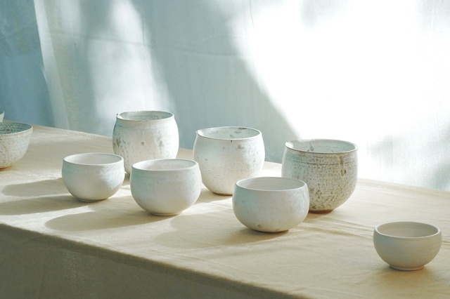 透明性のある白い磁器土を用いた器の製作・販売を行っています。白い器は2回焼成することでしっとりとした艶消しの質感とガラスのような透明感が特徴。大切な方を招いたときやお祝い事にぴったりです。