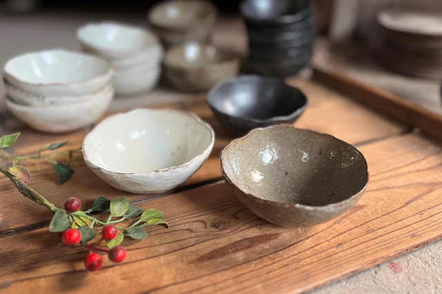 日常の風景にそっと溶け込み、目に留まると“ポッ”と心があたたかくなるような器を製作しています。一つ一つ丁寧に時間をかけ、お茶や食事の時間が少し特別になるような、器づくりを心がけています。