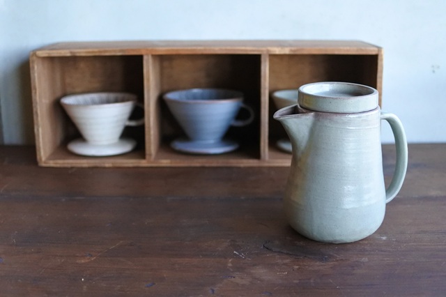 半磁器土に丁寧にシノギ模様を施し、松の灰釉で焼き上げました。機能的でスッキリした姿に、天然の石と植物からつくった釉薬で、毎日使用しても飽きないシンプルなデザインです。ぜひご覧ください。