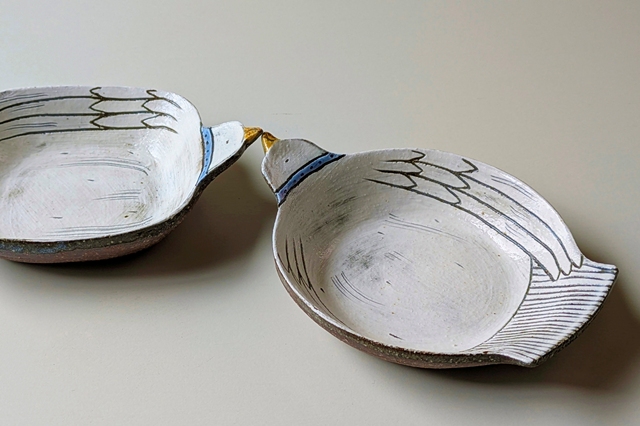 “掻き落とし”という技法を使って、日々の生活の中でほっこりのんびり過ごしてもらえたらいいなと思いながら陶器の器や小物を製作しています。動物たちのゆるい表情にぜひ癒されてください。
