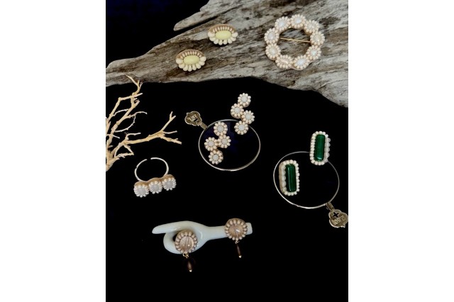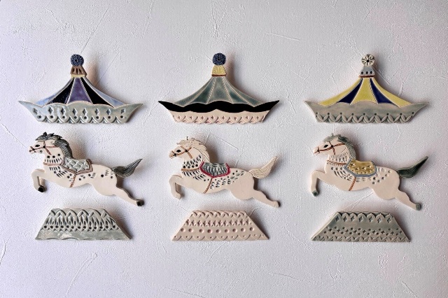 主に一点ものの陶磁器でできた装身具を製作しています。一つ一つ丁寧に手づくりされたオリジナルの装身具は、色も形も模様も様々。同じものがないアイテムの中からお気に入りの一点を見つけてください。