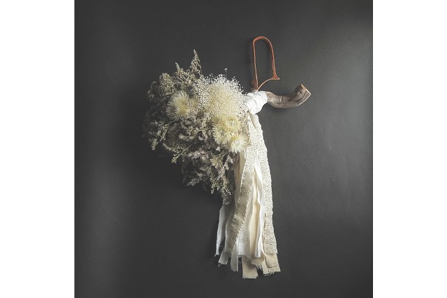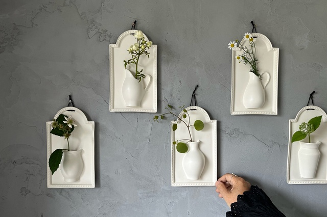 お部屋に物語を綴ってほしいという想いで、植物や動物を組み合わせた、陶器の壁掛けを製作。質感や色味など一つ一つ異なる雰囲気を持つ作品になっています。虫ピン一つで気軽に飾れるのも魅力的。