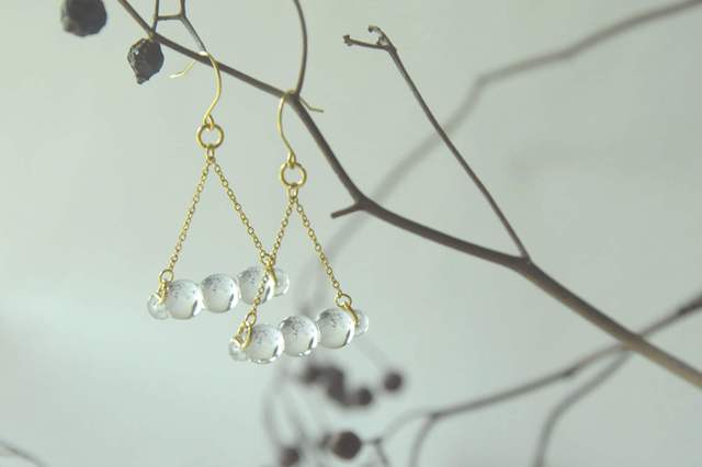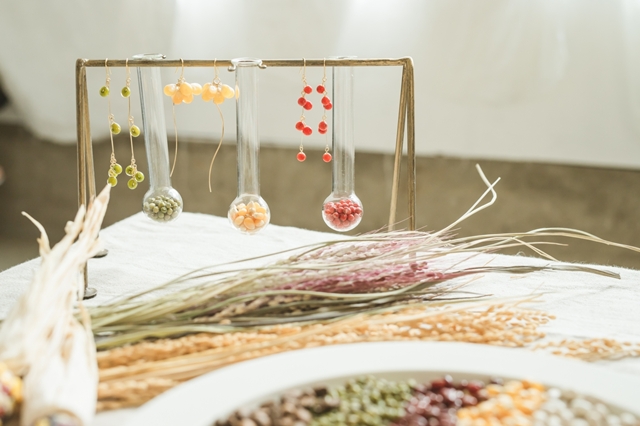 静岡県伊豆市で“日々に祈りを”をテーマに暮らしに寄り添うお守りのような装身具を製作。天然石やビンテージビーズを糸で一つ一つ編み込み、それぞれの素材の個性を大切に優しく揺れる耳飾りが並びます。