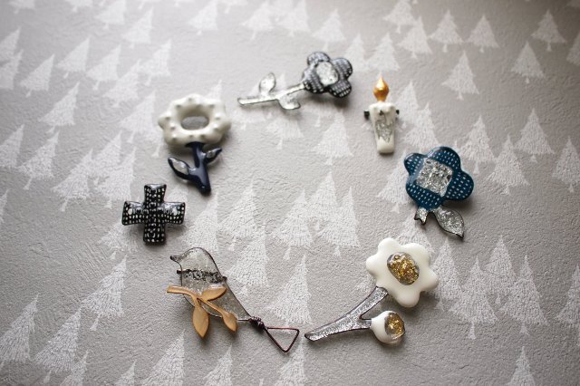 ピューター(錫合金)と真鍮などの金属や天然石で装身具を製作しています。身近な自然の儚さや四季のうつろいの美しさを、ブローチや耳飾りなど日常に溶け込んで楽しめるアイテムとしてお届けします。