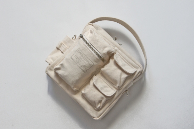 広島県尾道市の小さな工房で丈夫な帆布を使用したバッグや生活用品を製作。ミリタリーのラジオバッグをモチーフに製作したBOX型サコッシュは、内部で調整することでトートバッグにもなります。