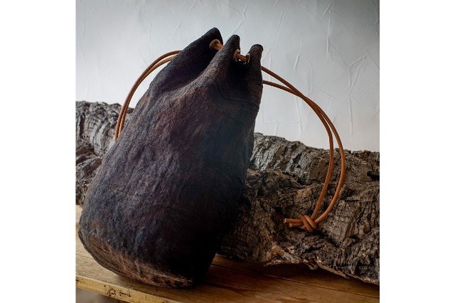 帆布やリネン生地を用い、デザインから裁縫、染織、媒染までを一人で一貫して製作。日本古来の伝統技法に独自の手法を加えることで、実用性と美しさを兼ね備えた暮らしに寄り添う逸品に仕上げています。